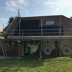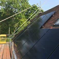 Steve & Mac, the electricians were great but massive thanks to Phil the roofer who actually spent all day climbing the roofs, fitting the brackets & lugging all 18 heavy panels into position, cleared the site & didn't leave til well after 6pm!