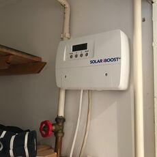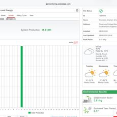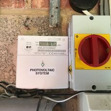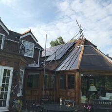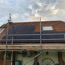 18 solid black solar panels installed by Infinity Energy Services on Monday 8th June. Each panel has it's own optimiser to avoid shading issues, an inverter, a 5.8kwH storage battery and an iBoost that diverts electricity to the immersion heater to make hot water instead of using gas when there is enough spare PV.